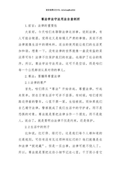 / 【七哥公文】2024年:尊法学法守法用法自查剖析+更多免费公文+VX:QiGeGongWen2024