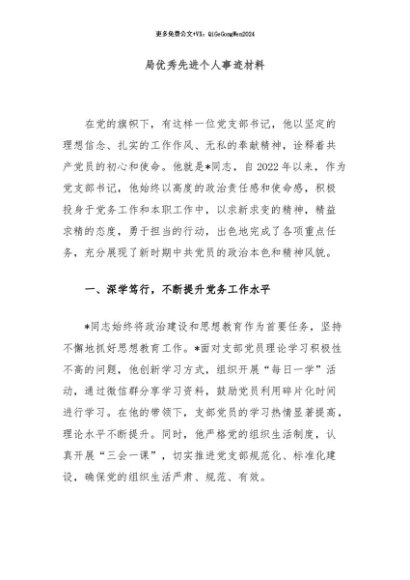 【七哥公文】2024年:局优秀先进个人事迹材料+更多免费公文+VX:QiGeGongWen2024