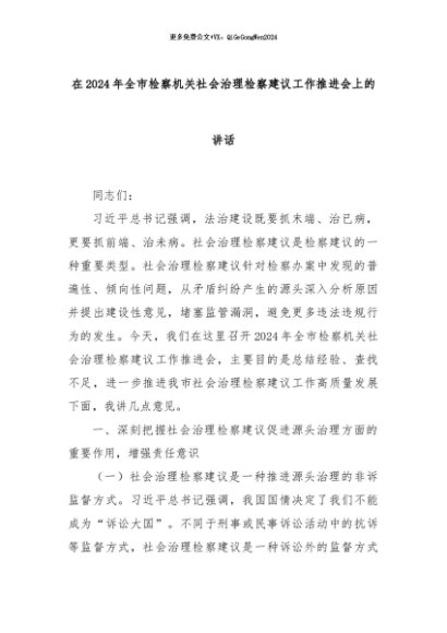 【七哥公文】2024年:在2024年全市检察机关社会治理检察建议工作推进会上的讲话+更多免费公文+VX:QiGeGongWen2024