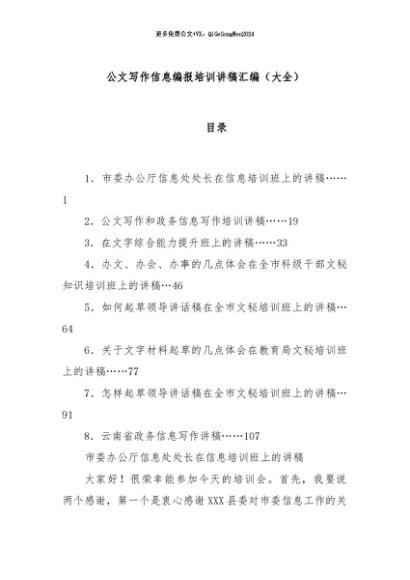 / 【七哥公文】2024年:公文写作信息编报培训讲稿汇编(大全)+更多免费公文+VX:QiGeGongWen2024