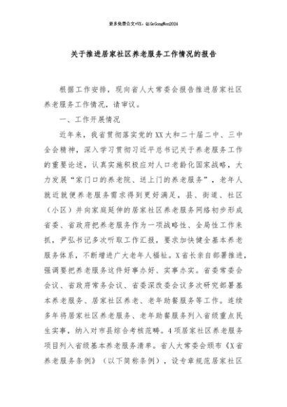 / 【七哥公文】2024年:关于推进居家社区养老服务工作情况的报告+更多免费公文+VX:QiGeGongWen2024