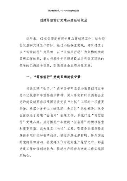 【七哥公文】2024年:创建笃信前行党建品牌经验做法+更多免费公文+VX:QiGeGongWen2024