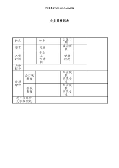 / 【七哥公文】2024年:公 务 员 登 记 表+更多免费公文+VX:QiGeGongWen2024