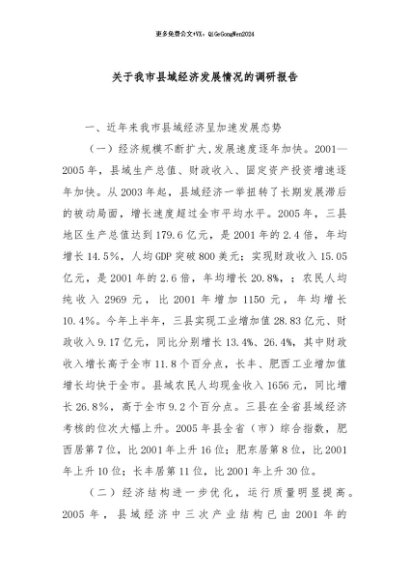 / 【七哥公文】2024年:关于我市县域经济发展情况的调研报告+更多免费公文+VX:QiGeGongWen2024
