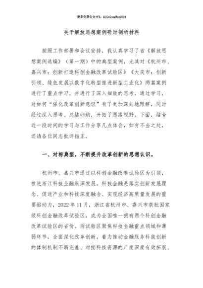 / 【七哥公文】2024年:关于解放思想案例研讨剖析材料+更多免费公文+VX:QiGeGongWen2024