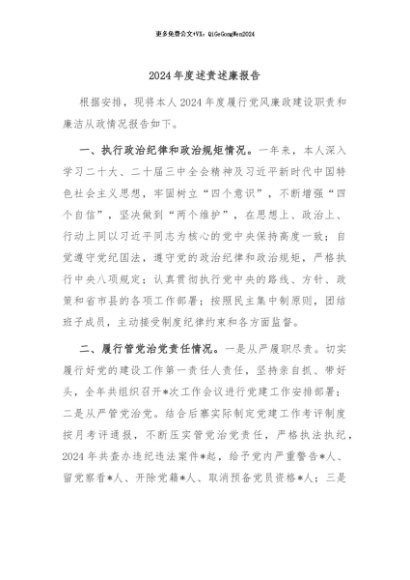 / 【七哥公文】2024年:2024年度述责述廉报告 (2)+更多免费公文+VX:QiGeGongWen2024