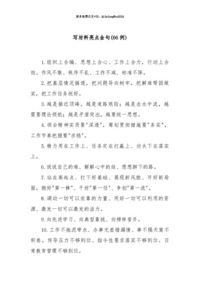 【七哥公文】2024年:(66例)写材料亮点金句+更多免费公文+VX:QiGeGongWen2024