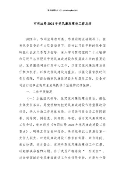 / 【七哥公文】2024年:市司法局2024年党风廉政建设工作总结+更多免费公文+VX:QiGeGongWen2024