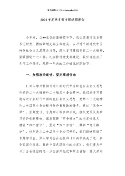 / 【七哥公文】2024年:2024年度党支部书记述职报告+更多免费公文+VX:QiGeGongWen2024