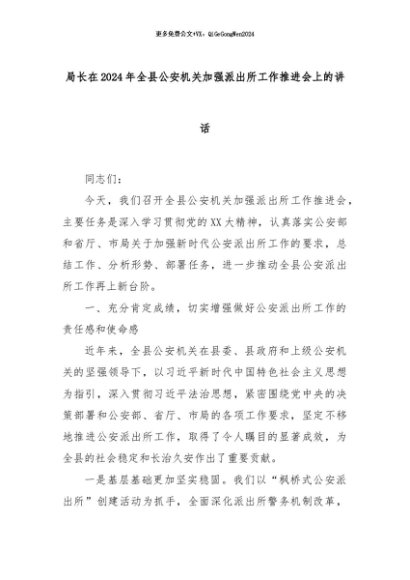 【七哥公文】2024年:局长在2024年全县公安机关加强派出所工作推进会上的讲话+更多免费公文+VX:QiGeGongWen2024