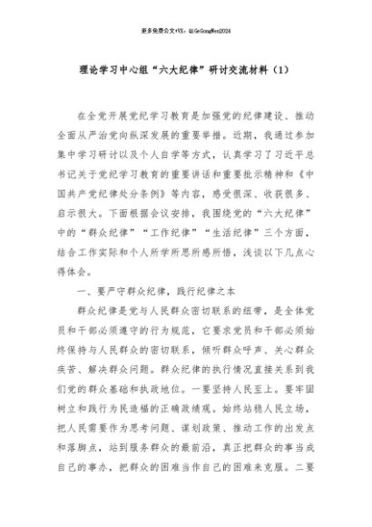 / 【七哥公文】2024年:理论学习中心组“六大纪律”研讨交流材料(1)+更多免费公文+VX:QiGeGongWen2024