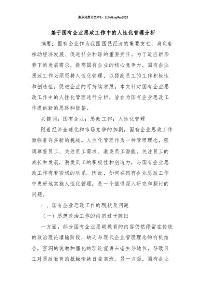 / 【七哥公文】2024年:基于国有企业思政工作中的人性化管理分析+更多免费公文+VX:QiGeGongWen2024