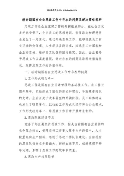 / 【七哥公文】2024年:新时期国有企业思政工作中存在的问题及解决策略探析+更多免费公文+VX:QiGeGongWen2024