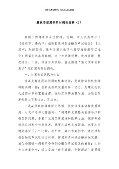 / 【七哥公文】2024年:解放思想案例研讨剖析材料(3)+更多免费公文+VX:QiGeGongWen2024