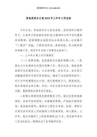 / 【七哥公文】2024年:某地政府办公室2024年上半年工作总结+更多免费公文+VX:QiGeGongWen2024