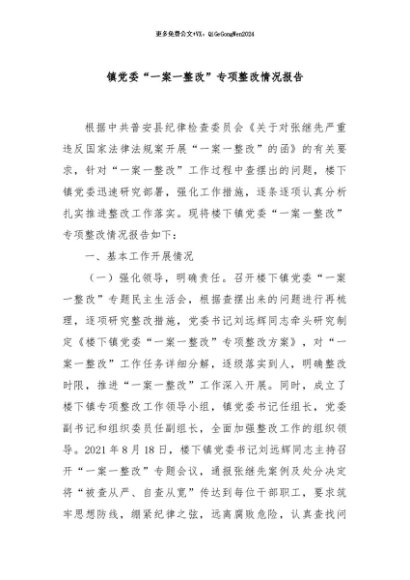 / 【七哥公文】2024年:镇党委“一案一整改”专项整改情况报告+更多免费公文+VX:QiGeGongWen2024