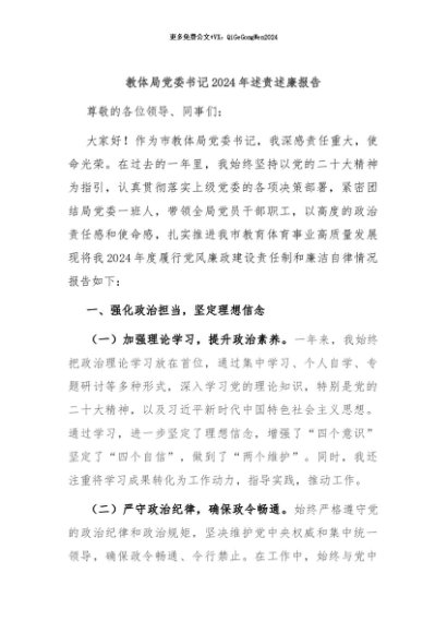 / 【七哥公文】2024年:教体局党委书记2024年述责述廉报告+更多免费公文+VX:QiGeGongWen2024