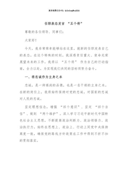 / 【七哥公文】2024年:任职表态发言 “五个将”+更多免费公文+VX:QiGeGongWen2024