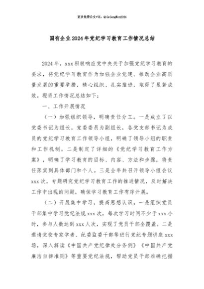/ 【七哥公文】2024年:国有企业2024年党纪学习教育工作情况总结+更多免费公文+VX:QiGeGongWen2024