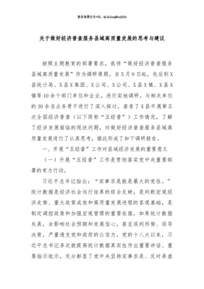 / 【七哥公文】2024年:关于做好经济普查服务县域高质量发展的思考与建议+更多免费公文+VX:QiGeGongWen2024