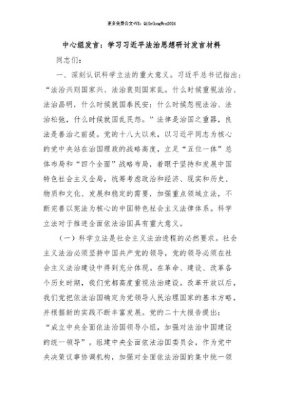 / 【七哥公文】2024年:中心组发言:学习习近平法治思想研讨发言材料+更多免费公文+VX:QiGeGongWen2024