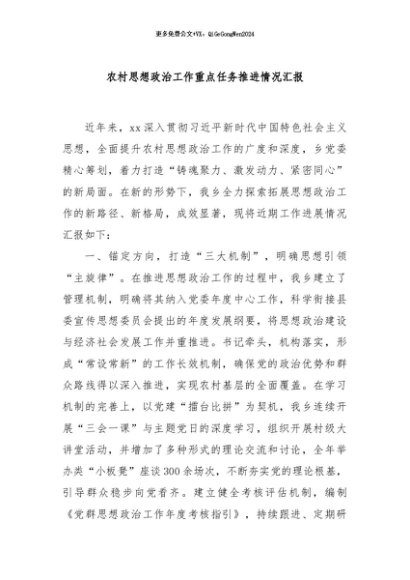 / 【七哥公文】2024年:农村思想政治工作重点任务推进情况汇报+更多免费公文+VX:QiGeGongWen2024