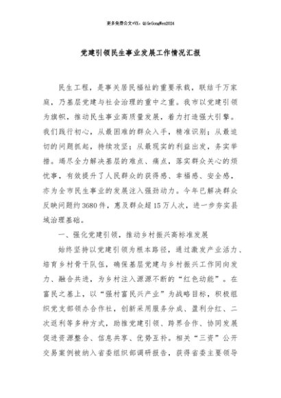/ 【七哥公文】2024年:党建引领民生事业发展工作情况汇报+更多免费公文+VX:QiGeGongWen2024
