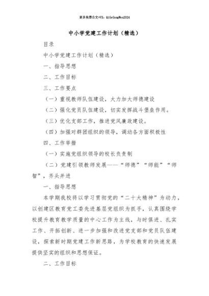 / 【七哥公文】2024年:中小学党建工作计划(精选)+更多免费公文+VX:QiGeGongWen2024