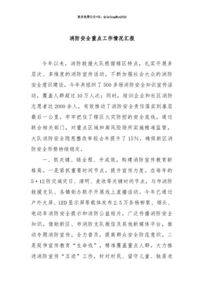 / 【七哥公文】2024年:消防安全重点工作情况汇报+更多免费公文+VX:QiGeGongWen2024