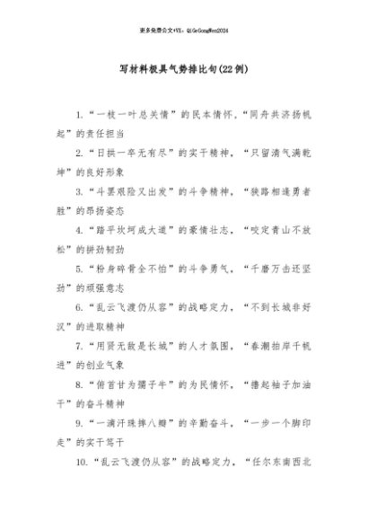 / 【七哥公文】2024年:(22例)写材料极具气势排比句+更多免费公文+VX:QiGeGongWen2024