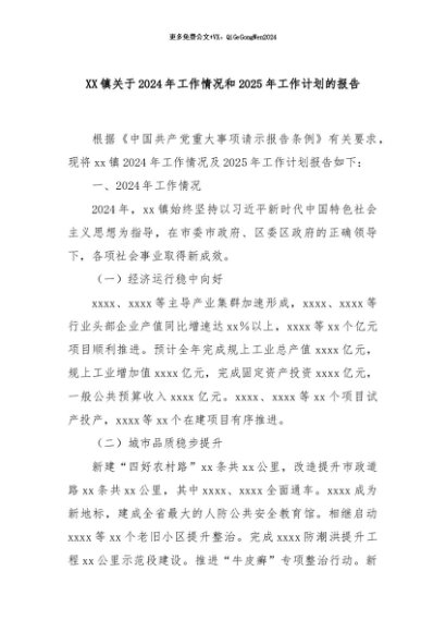 【七哥公文】2024年:XX镇关于2024年工作情况和2025年工作计划的报告+更多免费公文+VX:QiGeGongWen2024