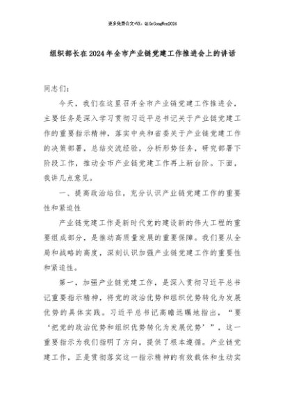 【七哥公文】2024年:组织部长在2024年全市产业链党建工作推进会上的讲话+更多免费公文+VX:QiGeGongWen2024