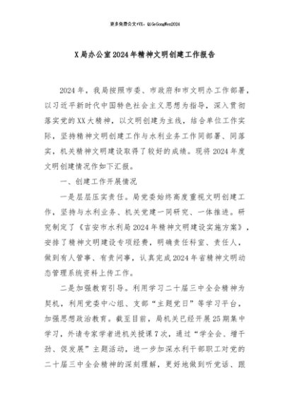 / 【七哥公文】2024年:X局办公室2024年精神文明创建工作报告+更多免费公文+VX:QiGeGongWen2024