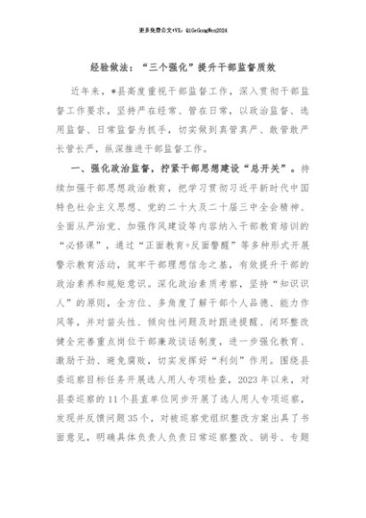 / 【七哥公文】2024年:经验做法:“三个强化”提升干部监督质效+更多免费公文+VX:QiGeGongWen2024