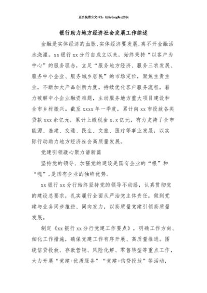 / 【七哥公文】2024年:银行助力地方经济社会发展工作综述+更多免费公文+VX:QiGeGongWen2024