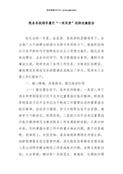 / 【七哥公文】2024年:税务系统领导履行“一岗双责”述职述廉报告+更多免费公文+VX:QiGeGongWen2024