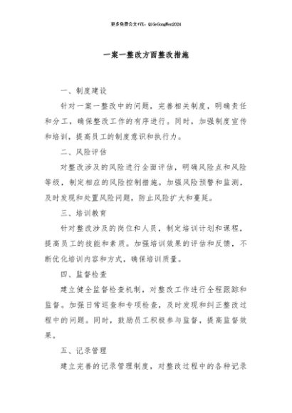 / 【七哥公文】2024年:一案一整改方面整改措施+更多免费公文+VX:QiGeGongWen2024