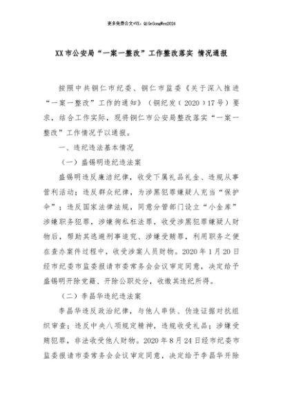 / 【七哥公文】2024年:XX市公安局“一案一整改”工作整改落实 情况通报+更多免费公文+VX:QiGeGongWen2024