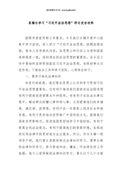 / 【七哥公文】2024年:某镇长学习“习近平法治思想”研讨发言材料+更多免费公文+VX:QiGeGongWen2024