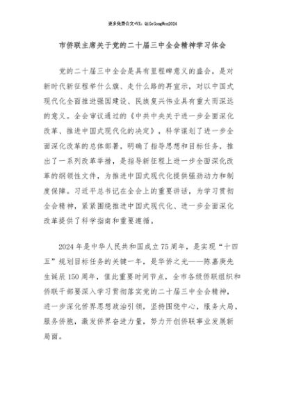 / 【七哥公文】2024年:市侨联主席关于党的二十届三中全会精神学习体会+更多免费公文+VX:QiGeGongWen2024