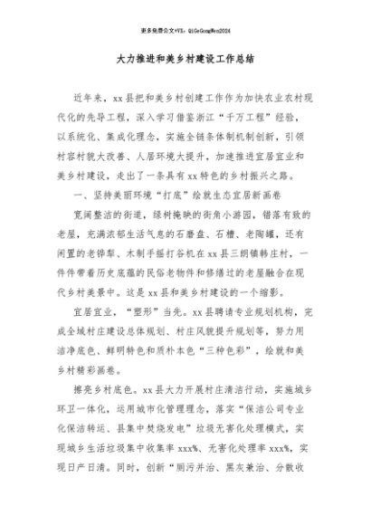 / 【七哥公文】2024年:大力推进和美乡村建设工作总结+更多免费公文+VX:QiGeGongWen2024