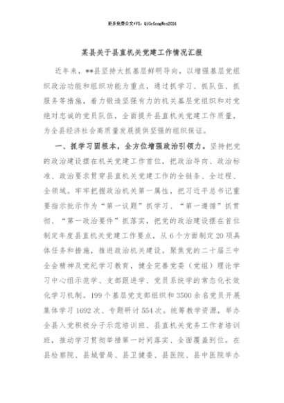 / 【七哥公文】2024年:某县关于县直机关党建工作情况汇报+更多免费公文+VX:QiGeGongWen2024