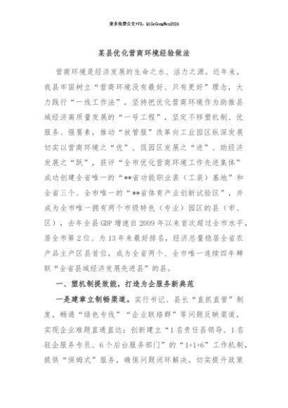 / 【七哥公文】2024年:某县优化营商环境经验做法+更多免费公文+VX:QiGeGongWen2024