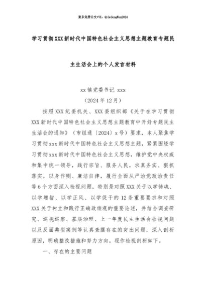 【七哥公文】2024年:学习贯彻XXX新时代中国特色社会主义思想主题教育专题民主生活会上的个人发言材料+更多免费公文+VX:QiGeGongWen2024