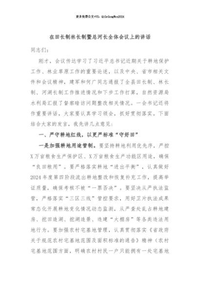 / 【七哥公文】2024年:在田长制林长制暨总河长全体会议上的讲话+更多免费公文+VX:QiGeGongWen2024