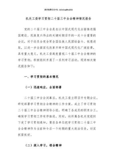 / 【七哥公文】2024年:机关工委学习贯彻二十届三中全会精神情况报告+更多免费公文+VX:QiGeGongWen2024