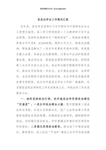 / 【七哥公文】2024年:某县法学会工作情况汇报+更多免费公文+VX:QiGeGongWen2024