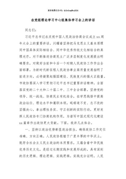 / 【七哥公文】2024年:在党组理论学习中心组集体学习会上的讲话+更多免费公文+VX:QiGeGongWen2024