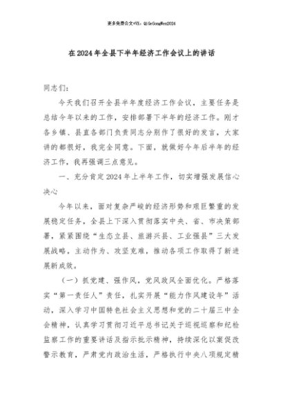 / 【七哥公文】2024年:在2024年全县下半年经济工作会议上的讲话+更多免费公文+VX:QiGeGongWen2024