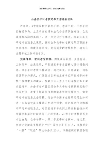 【七哥公文】2024年:公务员平时考核定等工作经验材料+更多免费公文+VX:QiGeGongWen2024